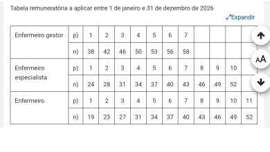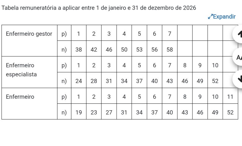 Decreto-Lei que altera as tabelas remuneratórias da Carreira de Enfermagem em 2026