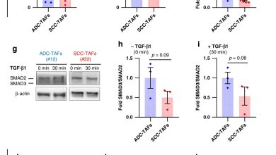 Modelos genéticos para imitar alterações SMAD2/3 em ADC-TAFs e SCC-TAFs derivados de pacientes. a–c, dobra SMAD3 (a) e SMAD2 (b)…