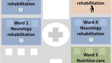 Organização do hospital Berck-sur-Mer. O hospital é composto por cinco enfermarias: 3 enfermarias especializadas em reabilitação neurológica, 1 enfermaria em…