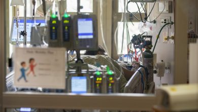 Uma paciente grávida e intubada com COVID-19 está na Unidade de Terapia Intensiva Cirúrgica de um hospital em Boise, Idaho,…