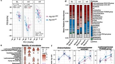 Caracterização da microbiota intestinal de ATG16L1fl/fl e ATG16L1∆iec camundongos durante a gravidez e após os períodos de lactação. Crédito: Micróbios…
