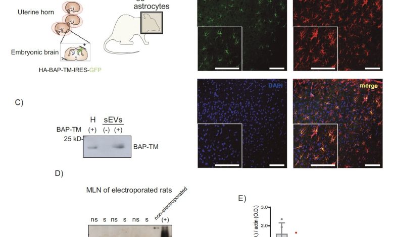 “A eletroporação intrauterina realizada para expressar seletivamente uma proteína recombinante de membrana associada ao AsEV em astrócitos do prosencéfalo de rato revela que esta proteína é transferida para o tecido linfóide associado ao intestino (GALT)”, escreveram os autores.