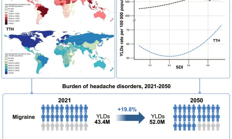 Tissa Wijeratne et al, Carga global, regional e nacional de distúrbios de dor de cabeça, 1990–2021, com previsões para 2050: Um estudo sobre a carga global de doenças 2021, Medicina de relatórios celulares (2025). DOI: 10.1016/j.xcrm.2025.102348