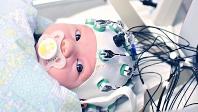 Um recém-nascido durante uma gravação de EEG. Crédito: Sergio Navarrete Arroyo Atrasos no desenvolvimento da linguagem e da leitura são…